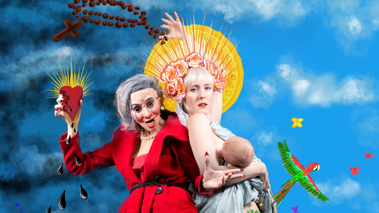 In their quest to ‘smash the patriarchy’ they leave nothing untouched, God, Jesus, Men, women, Adam, Eve, plastic surgery, bikers, singing clitorises – you name it they have it. A stunning kaleidoscope of character changes, China Blue Fish and Deborah Antoinette effortlessly manifest a myriad display of sacred and/or profane characters to explore and challenge the accepted norms in our society.